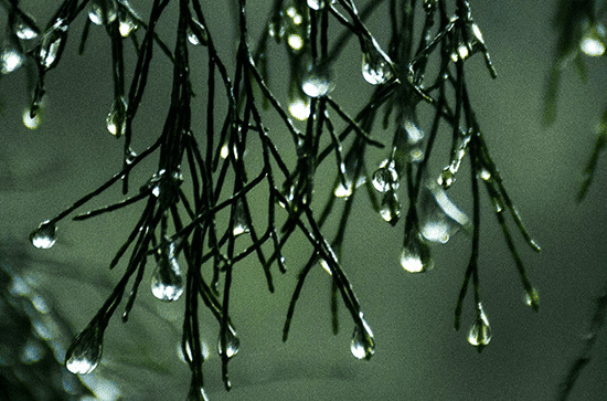 30、雨水洒下来,各种花草的叶子上都凝结着一颗颗晶莹的水珠。