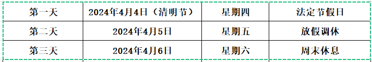 2024年清明具体时间:4月4日15:02:03,星期四,农历二月二十六。今年清明节放假时间:4月4日至6日放假调休,共3天。4月7日(星期日)上班。