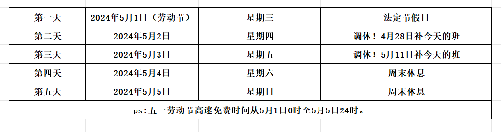 2024年5月1日调休放假几天