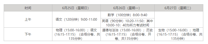 2024年海南海口中考时间确定在:6月25日至27日。海口科目有语文、数学、英语(含听力)、道德与法治、历史、物理、化学、生物、地理、体育与健康。