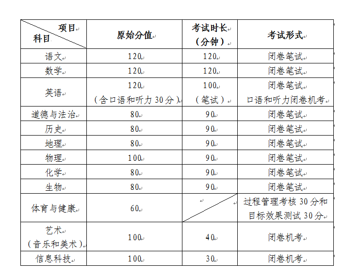 语文、数学、英语(含口语和听力)、道德与法治、历史、地理、物理、化学、生物,由市教育局统一命题并组织考试。