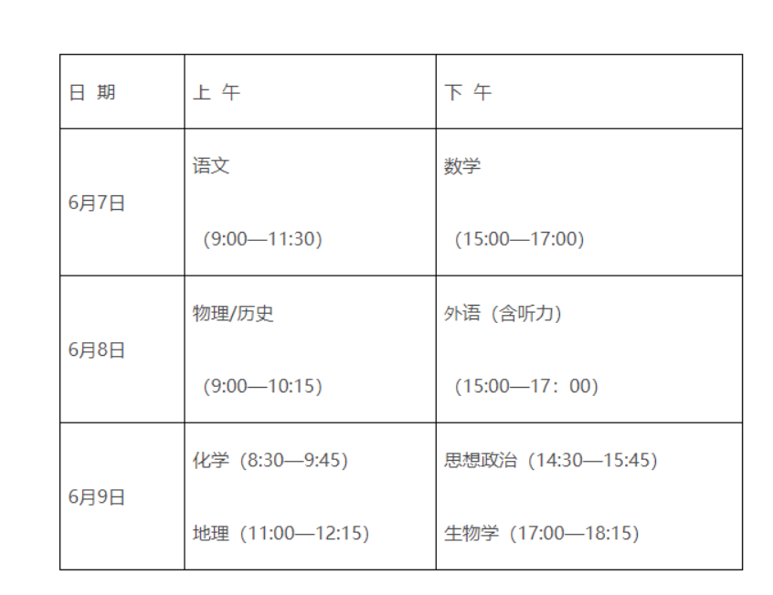 从江西省教育考试院发布的《江西2024年普通高校招生文化考试安排和录取工作实施方案》中得知,2024年江西高考时间定于6月7日-9日举行,相关事宜详情如下: